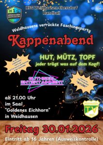 Am 30. Januar ist es wieder so weit. Der legendäre Kappenabend der Handball startet durch.
