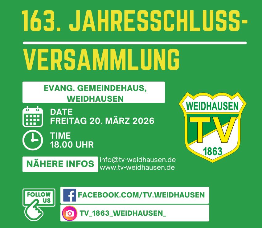 Der TVW lädt alle seine Mitglieder recht herzlich zur seiner 163. Jahresschlussversammlung ein.