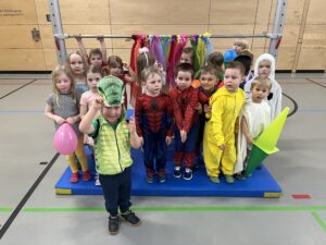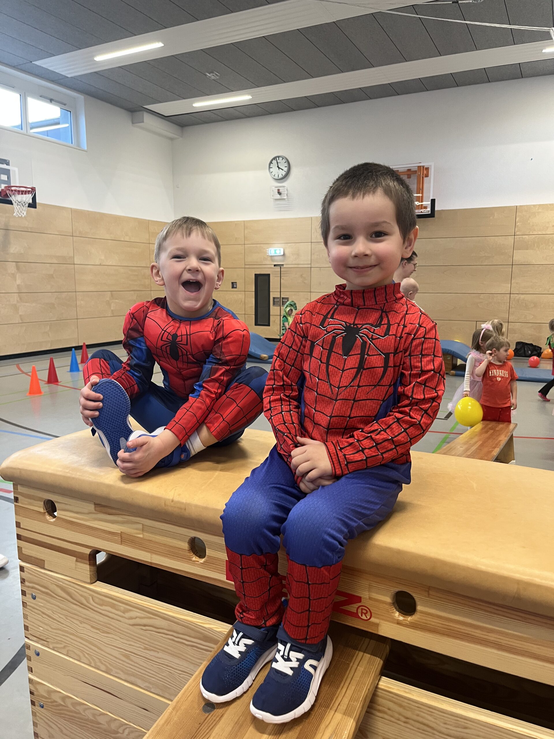 Mit tollen Kostümen und lustiger Faschingsmusik wurde sowohl beim Eltern-Kind-Turnen als auch bei den Bambinis Fasching gefeiert. Sauseschritt, Polonäse, Spiele mit Luftballons und natürlich der Geräteparcours – es blieben keine Wünsche offen.