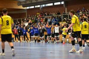 Mit dem Ziel vor Augen, sich für die grandiose Saison zu belohnen, mobilisierten die Herren der HSG nochmals alle Kraftreserven. Dem sicheren 7-Meter-Schützen der HSG, Lukas Marinos, war es vorbehalten, 30 Sekunden vor Ende den 25:25-Ausgleich zu erzielen. Als die Gäste sieben Sekunden vor dem Ende den Abschluss suchten und dieser Versuch das Tor verfehlte, brachen alle Dämme bei der Mannschaft und auf den Zuschauerrängen: Die Spieler fielen sich unter dem tosenden Applaus der Fans in die Arme und bejubelten die nicht mehr für möglich gehaltene Meisterschaft und den damit verbundenen Aufstieg.
