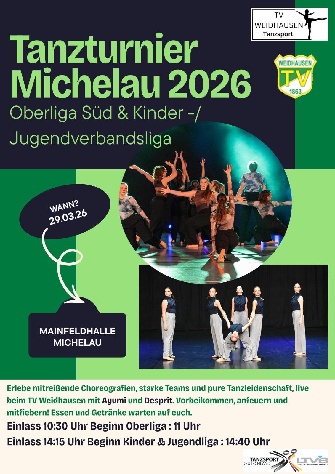 Beim ersten Tanzturnier in der Mainfeldhalle in Michelau präsentiert der TV Weidhausen am 29.03.2026 hochklassigen Tanzsport.
